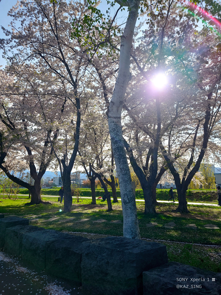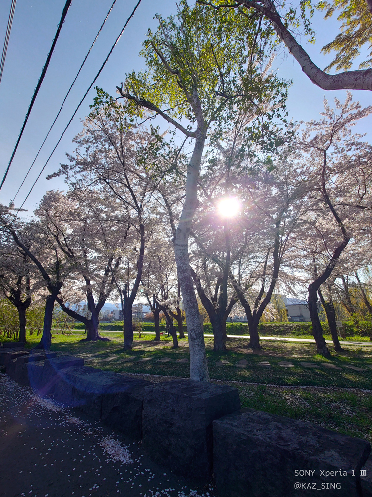 西日に照らされる感じの桜も乙なものでした。
