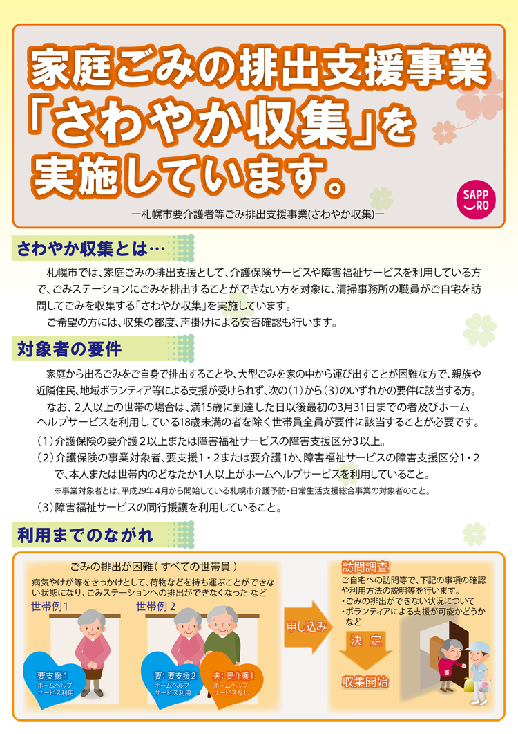 他にもヘルパー利用することで、札幌市独自のゴミ出しの支援も受けられるのは